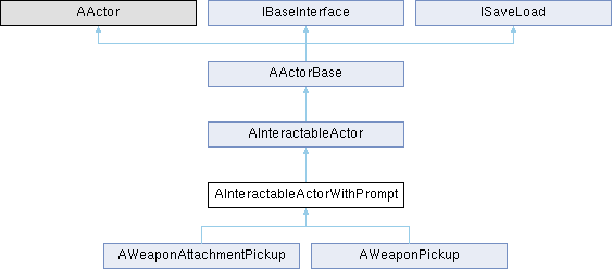 The AInteractableActorWithPrompt class represents an interactable actor with a prompt for interaction. It inherits from AInteractableActor class.
